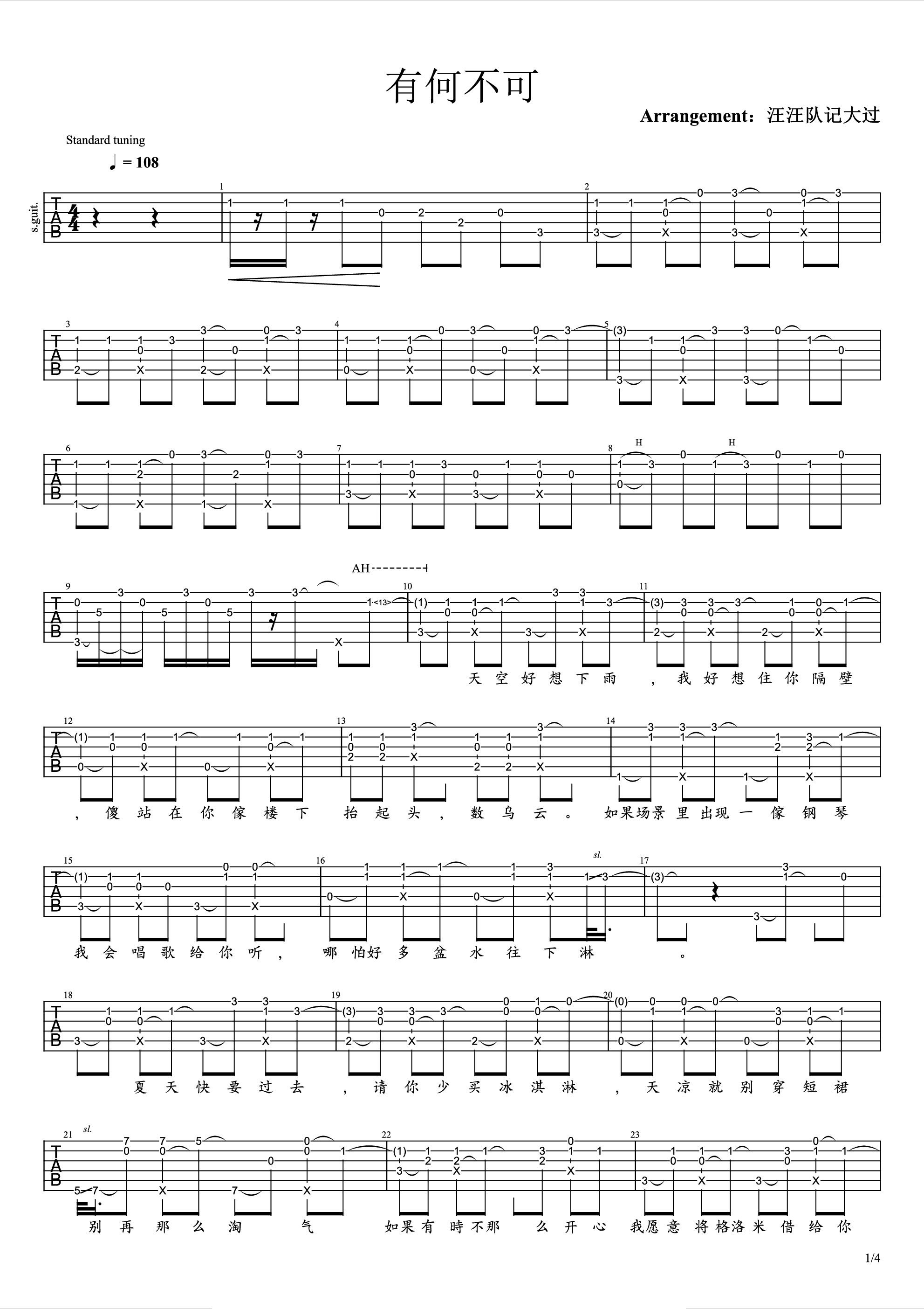 《有何不可》吉他谱_许嵩_C调加花版弹唱六线谱...