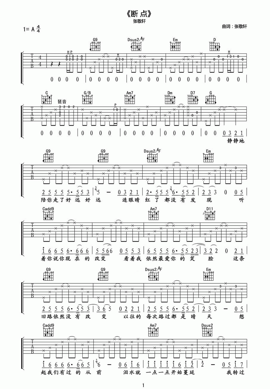 断点吉他谱六线谱张敬轩...