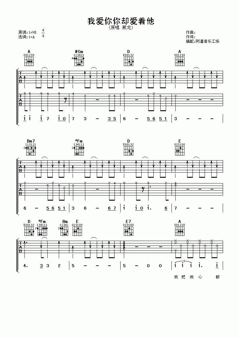 我爱你你却爱着他吉他谱黑龙...