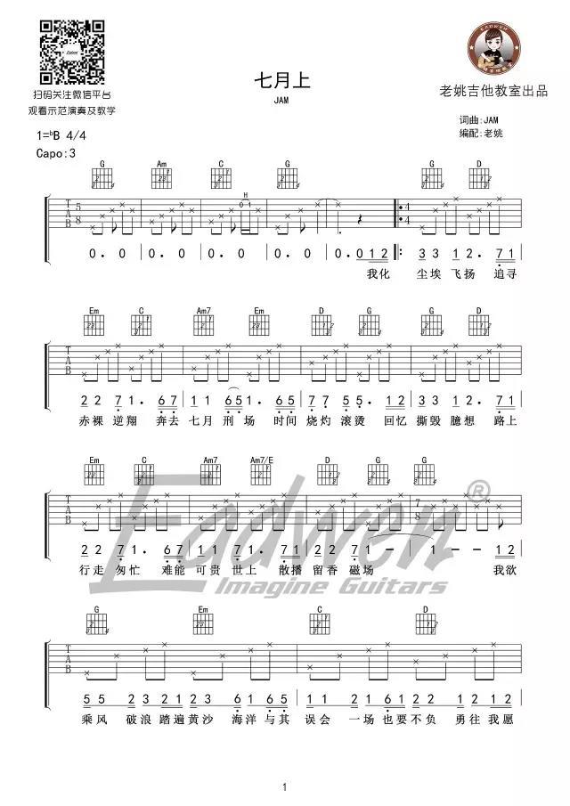 吉他七月上_降B调吉他谱_Jam(阿敬)