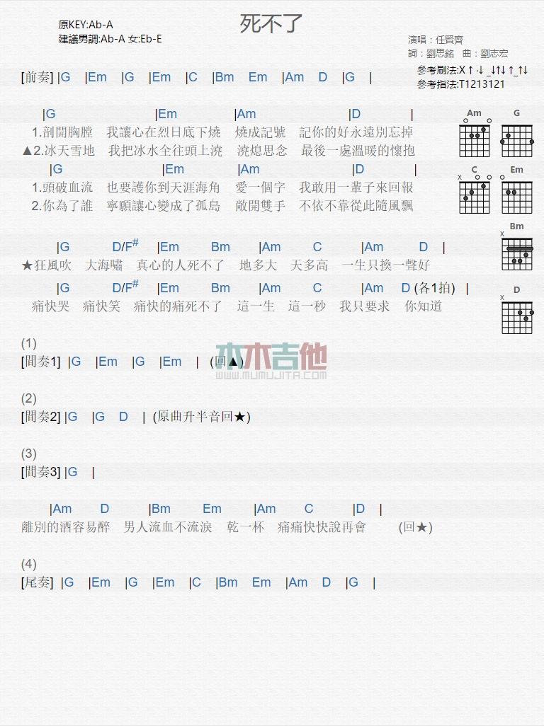 死不了_吉他谱_任贤齐...