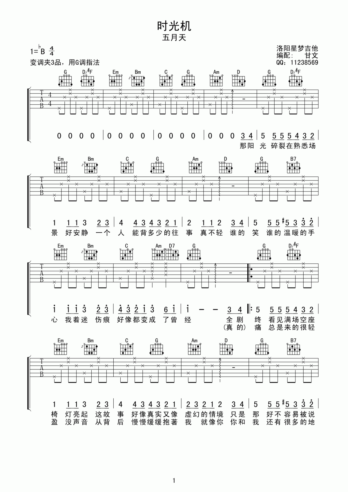 吉他时光机吉他谱 G调 五月天