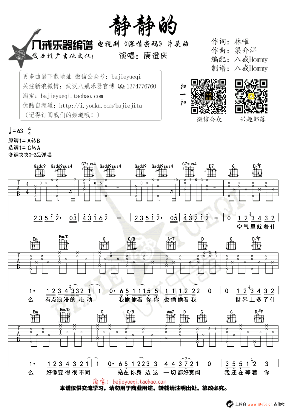 吉他庾澄庆《静静的》吉他谱_六线谱(图片)_吉他弹唱谱
