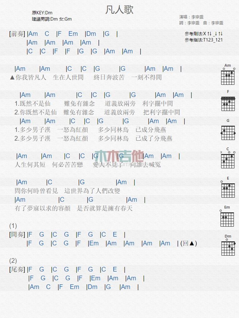 凡人歌_吉他谱_李宗盛...