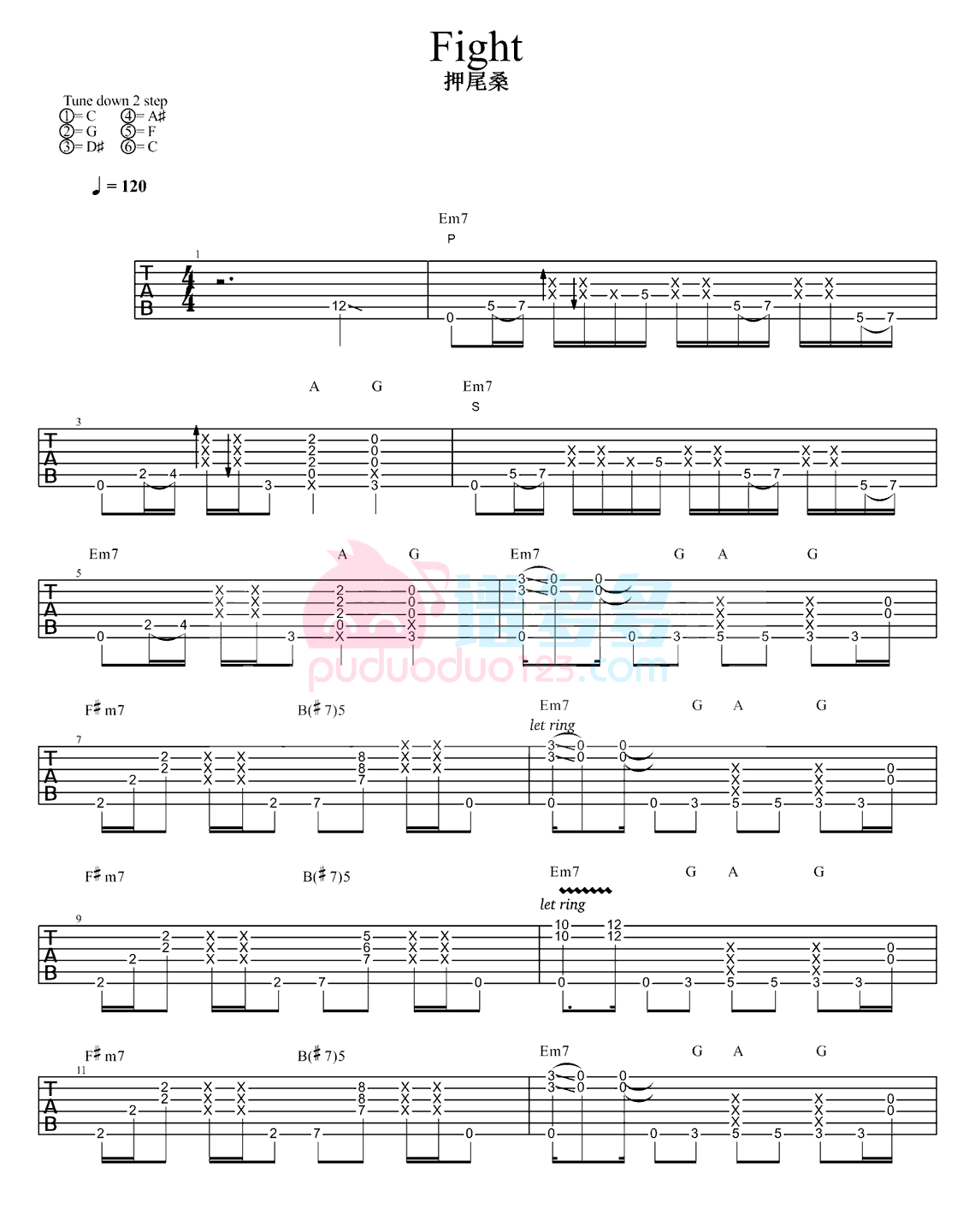 吉他押尾桑《Fight》吉他指弹谱