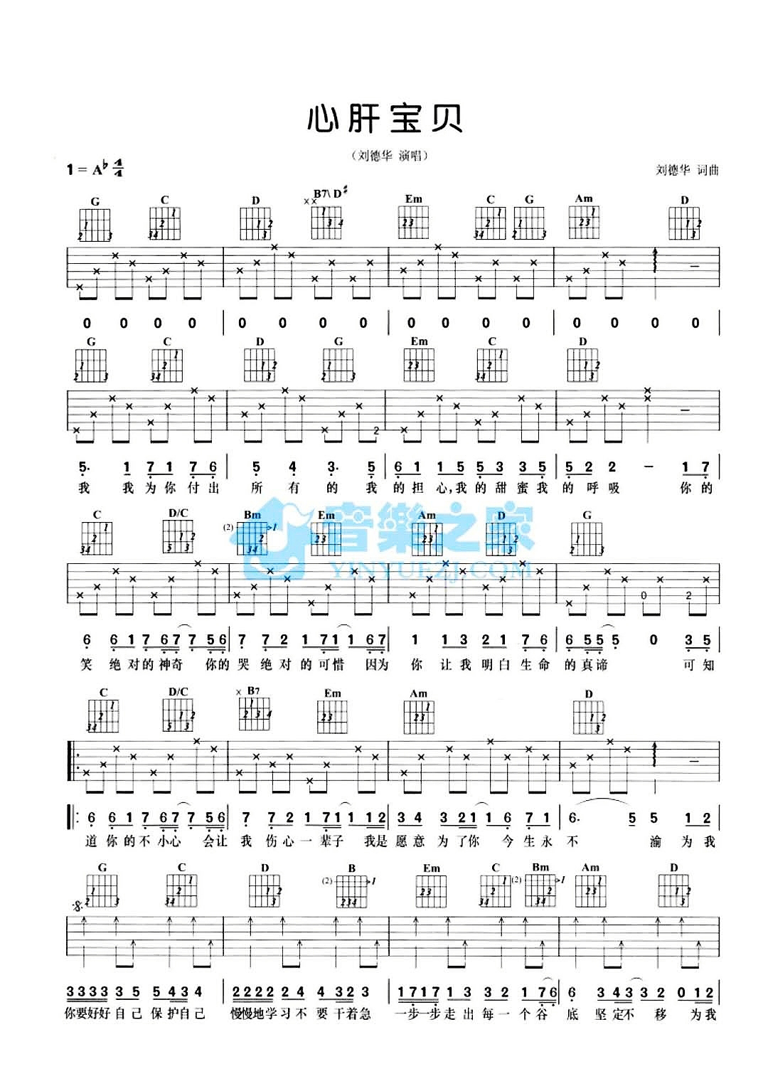 刘德华《心肝宝贝》吉他谱_G调吉他弹唱谱...