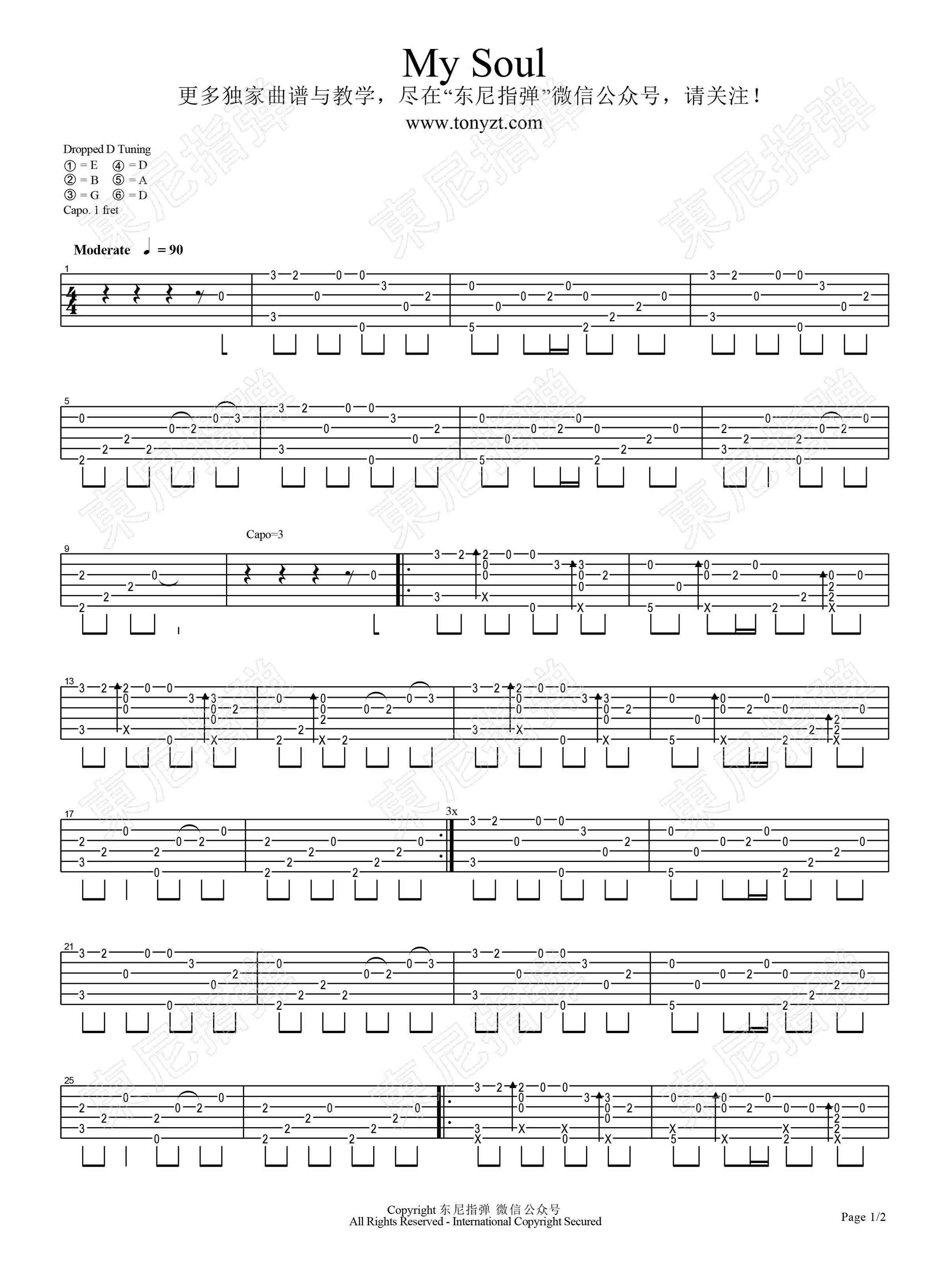 吉他东尼指弹《My soul》吉他谱_吉他弹唱谱