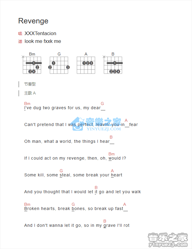 吉他XXXTentacion《Revenge》吉他谱_吉他弹唱谱