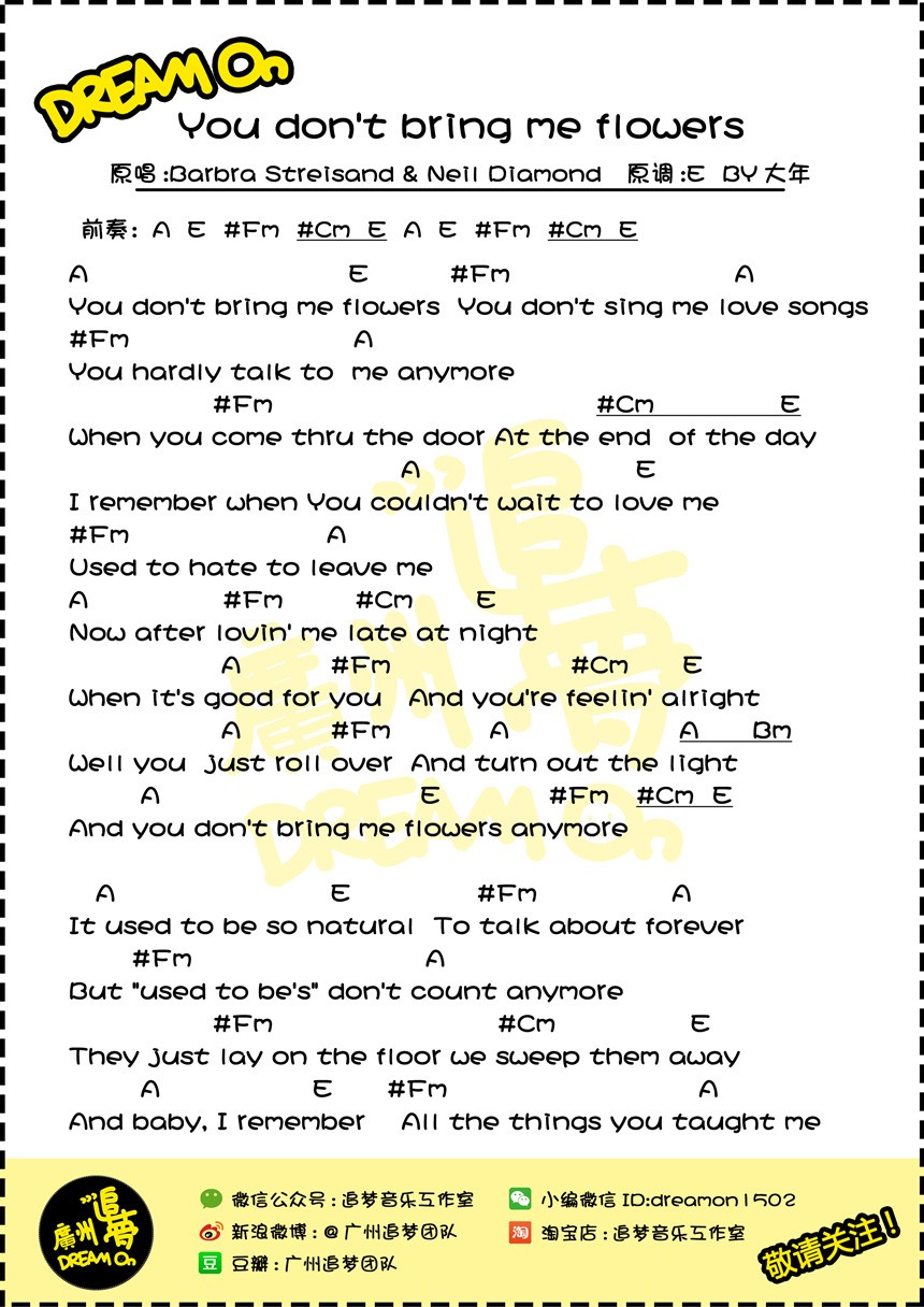 林忆莲《YouDon'tBringMeFlowers》尤克里里谱-A调女生弹唱版...