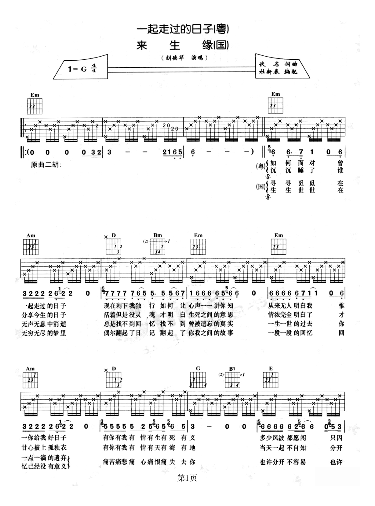 吉他刘德华《来生缘》吉他谱_吉他弹唱谱_YYZJ编配