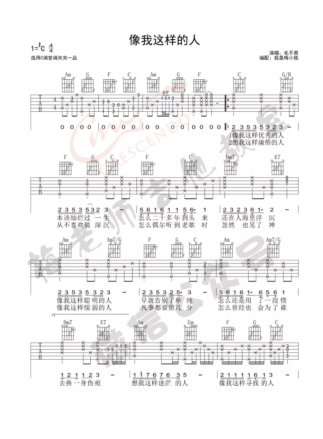 吉他毛不易《像我这样的人》吉他谱_吉他弹唱谱_我是梅小贱编配
