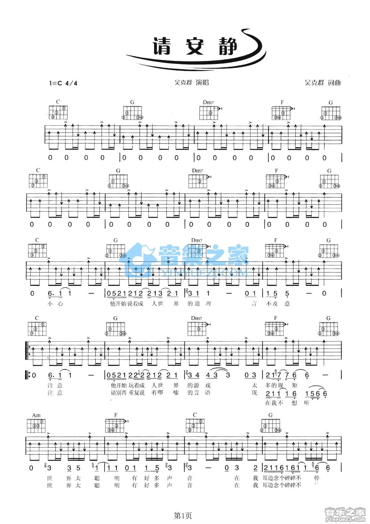 吉他吴克t《请安静》吉他谱_吉他弹唱谱