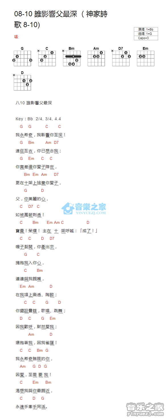 G调版神家诗歌08-10《谁影响父最深》吉他和弦弹唱谱...