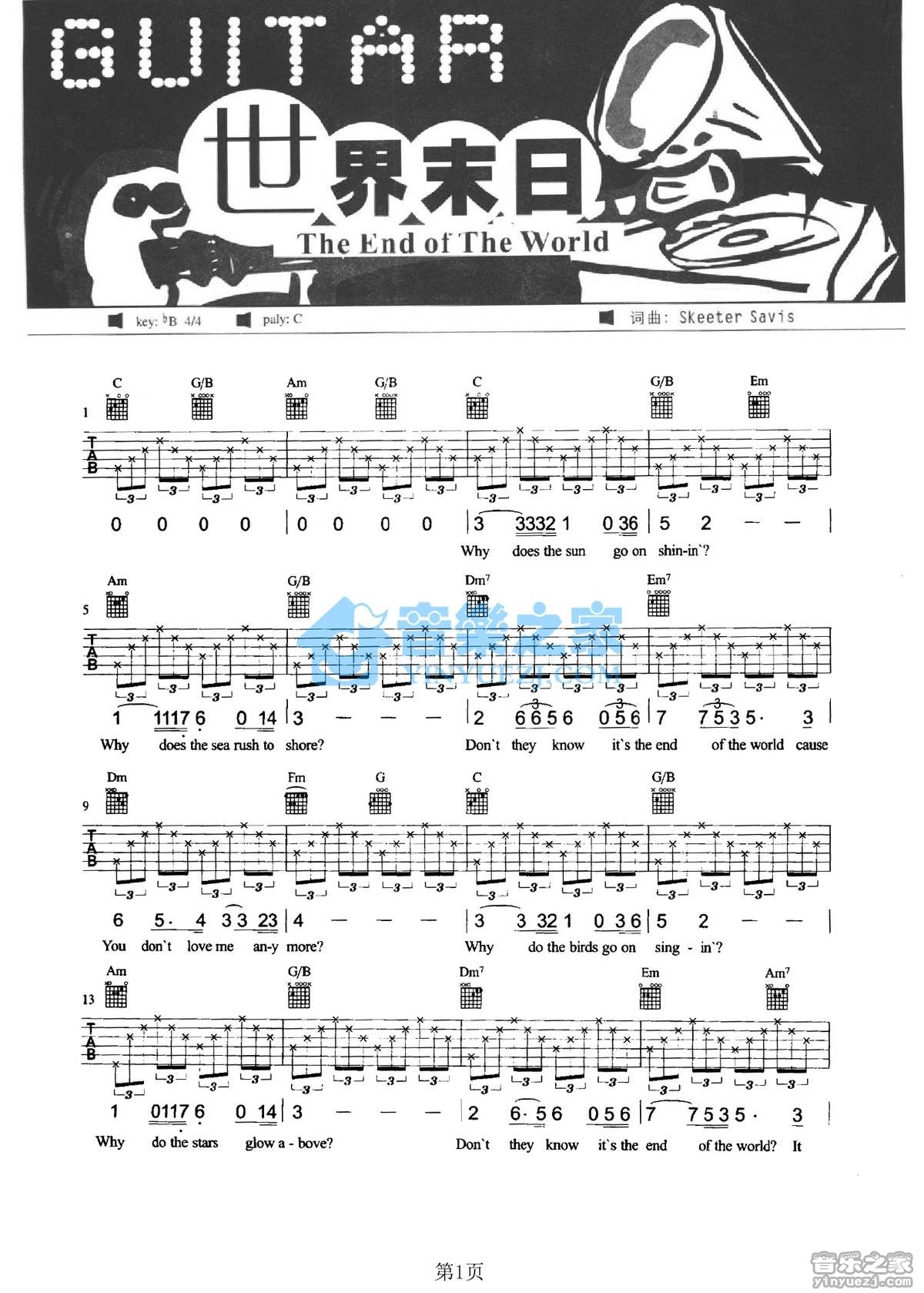 吉他SkeeterDavis《The End Of The World》吉他谱_吉他弹唱谱_YYZJ编配