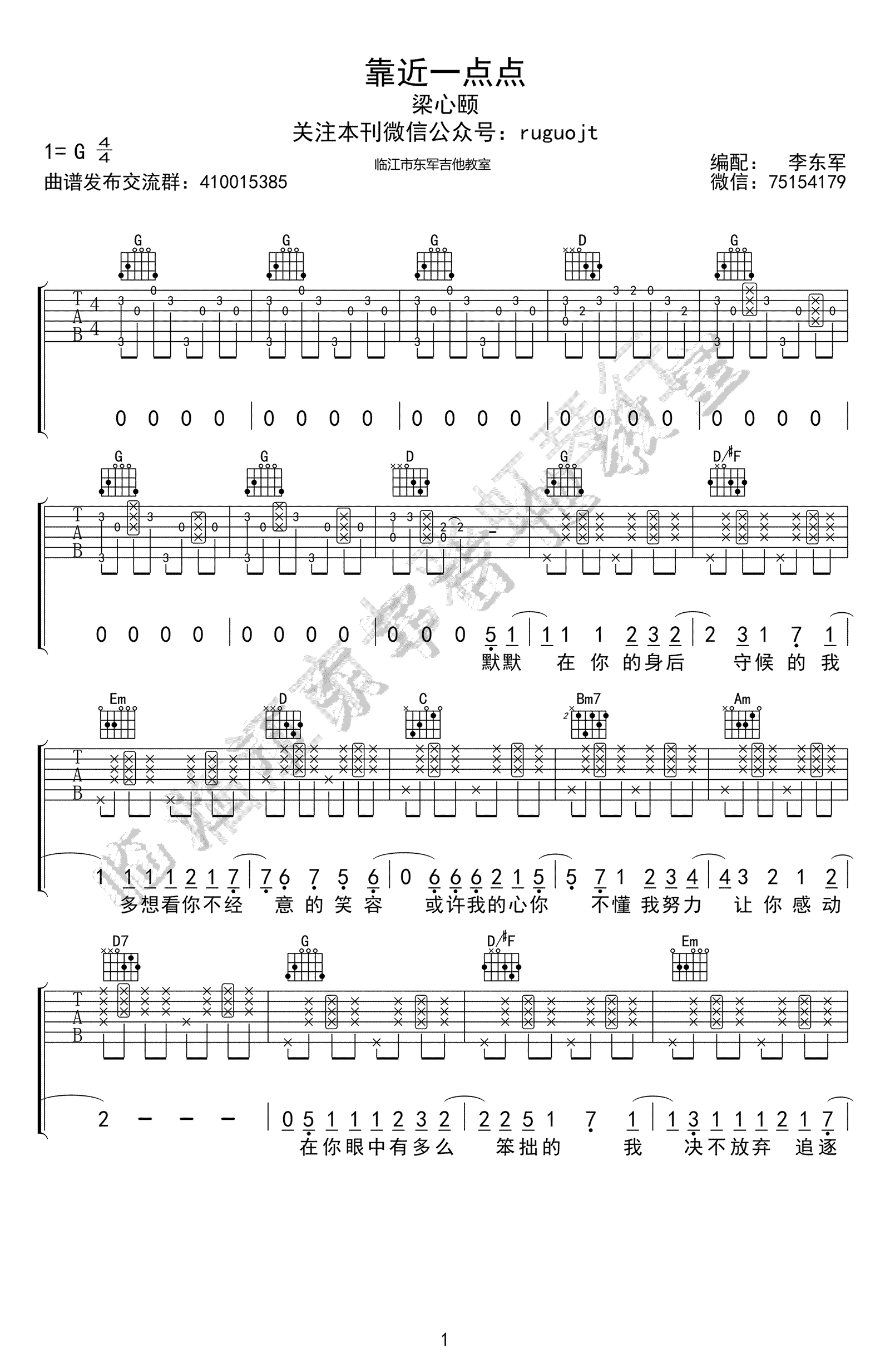 梁心颐《靠近一点点》吉他谱_G调吉他弹唱谱...