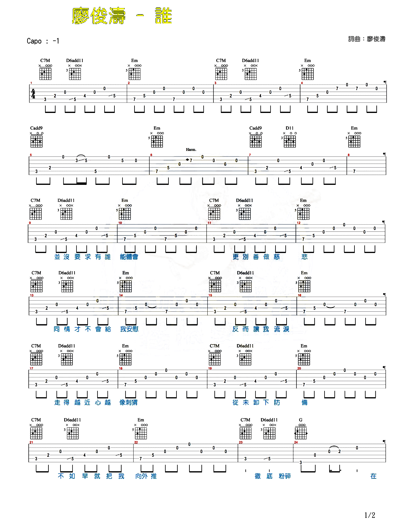 吉他吉他谱《谁》吉他谱_吉他弹唱谱_马叔叔编配