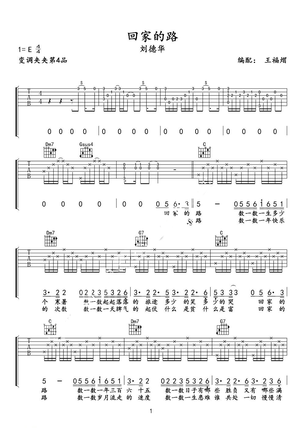吉他刘德华《回家的路》吉他谱_吉他弹唱谱_王福熠编配