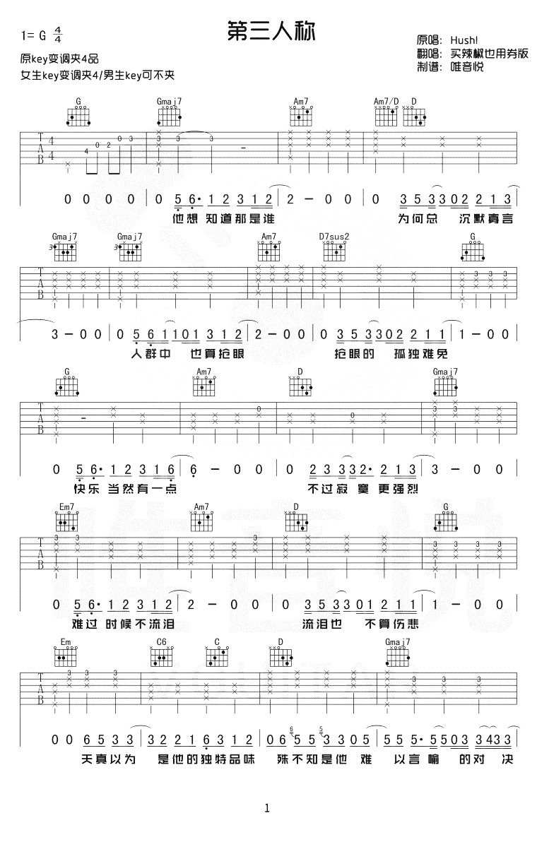 吉他买辣椒也用券《第三人称》吉他谱_吉他弹唱谱_唯音悦编配