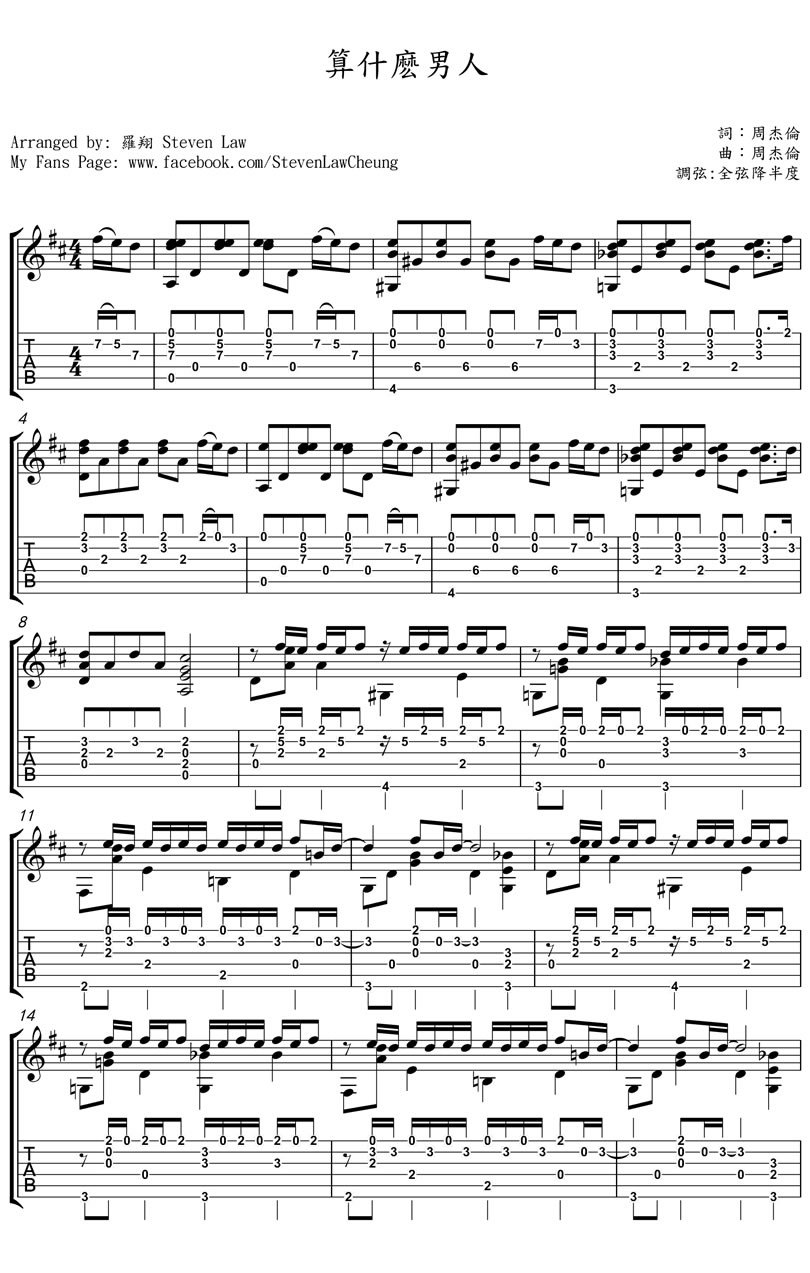 吉他周杰伦《算什么男人》吉他谱_吉他弹唱谱_罗翔StevenLaw编配