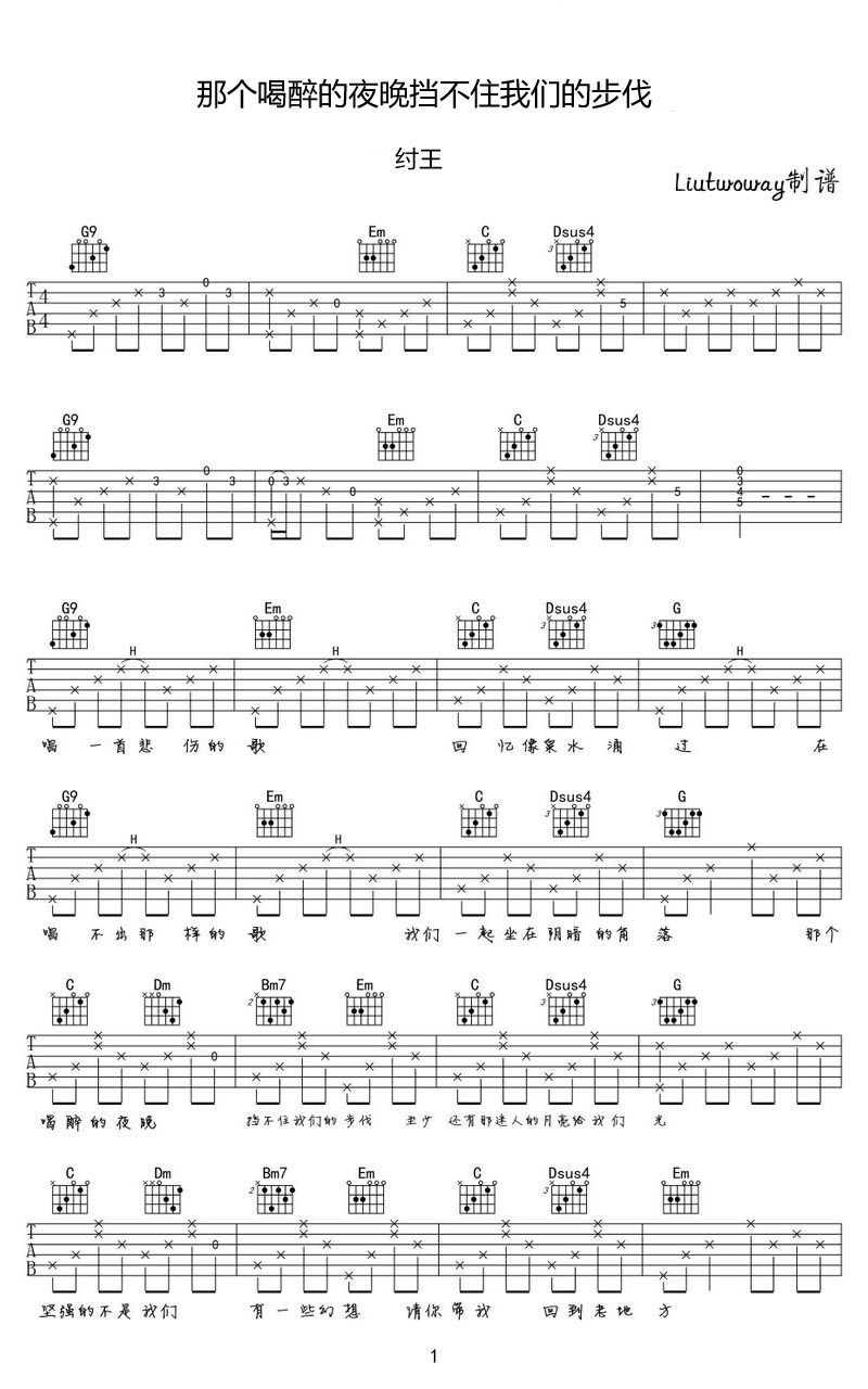 吉他纣王《那个喝醉的夜晚挡不住我们的步伐》吉他谱_吉他弹唱谱