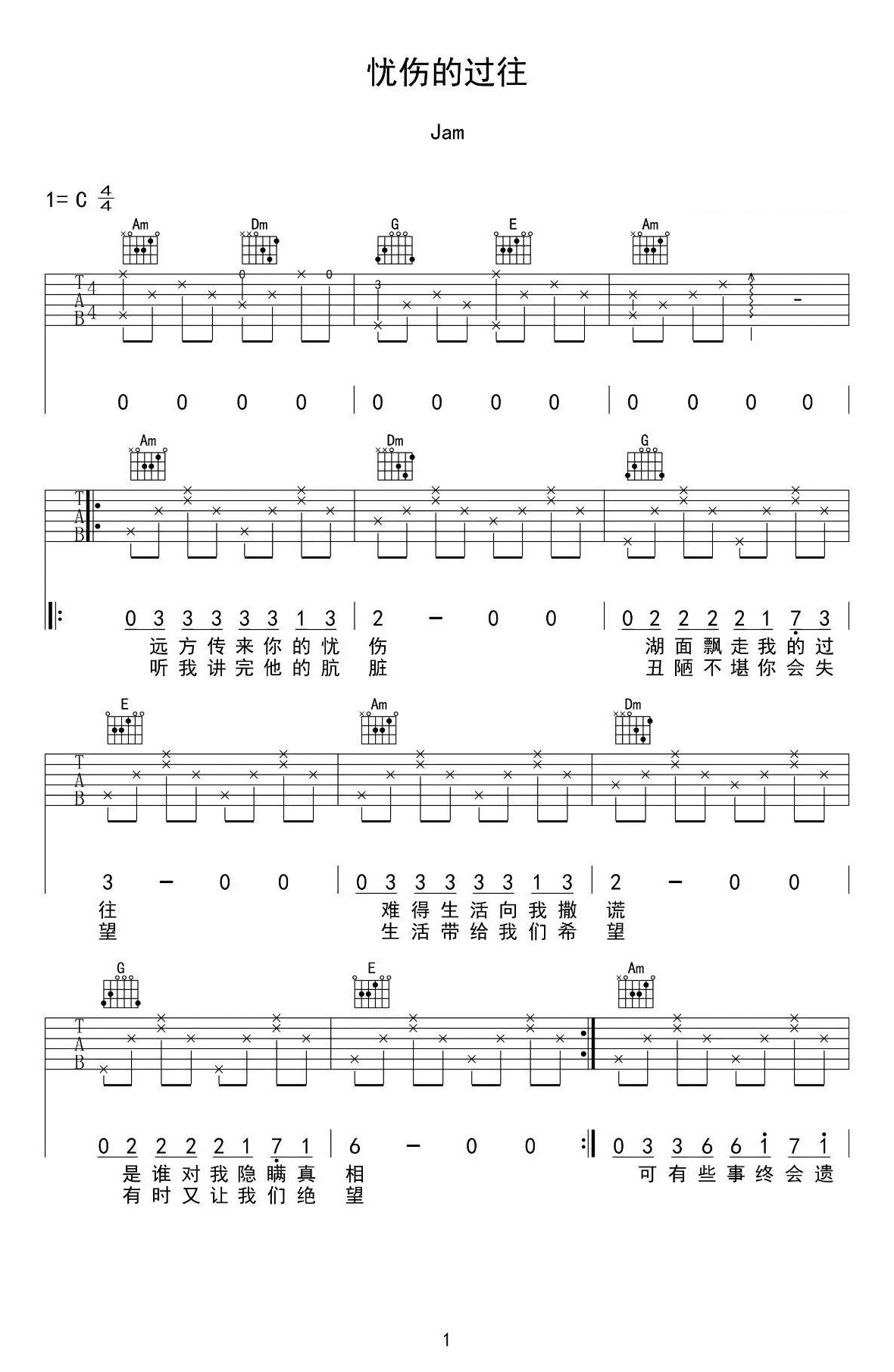 JAM《忧伤的过往》吉他谱,C调指法,高清弹唱谱,这首一首非常简单的歌曲,适合吉他初学者女生弹唱,也很适合琴友扒谱练习。淡淡忧伤的旋律,优美如诗的歌词,让人沉静安宁,曲谱做了一段简单的前奏,弹奏起来就没有那么空洞了。别在悲伤的过往里逗留,我们都不会年轻太久,干净的吉他弹唱、娓娓道...