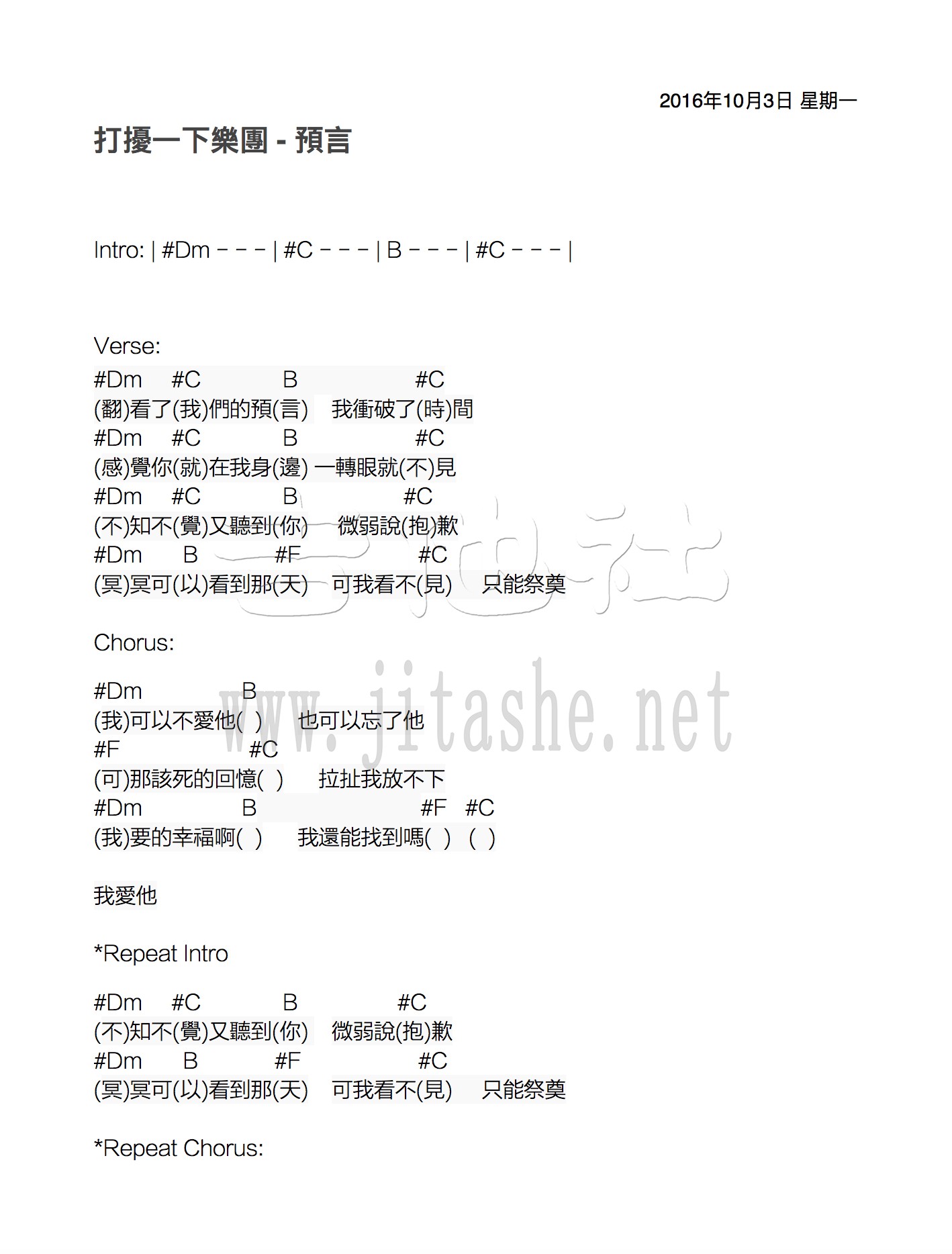 吉他打扰一下《预言》吉他谱_吉他弹唱谱