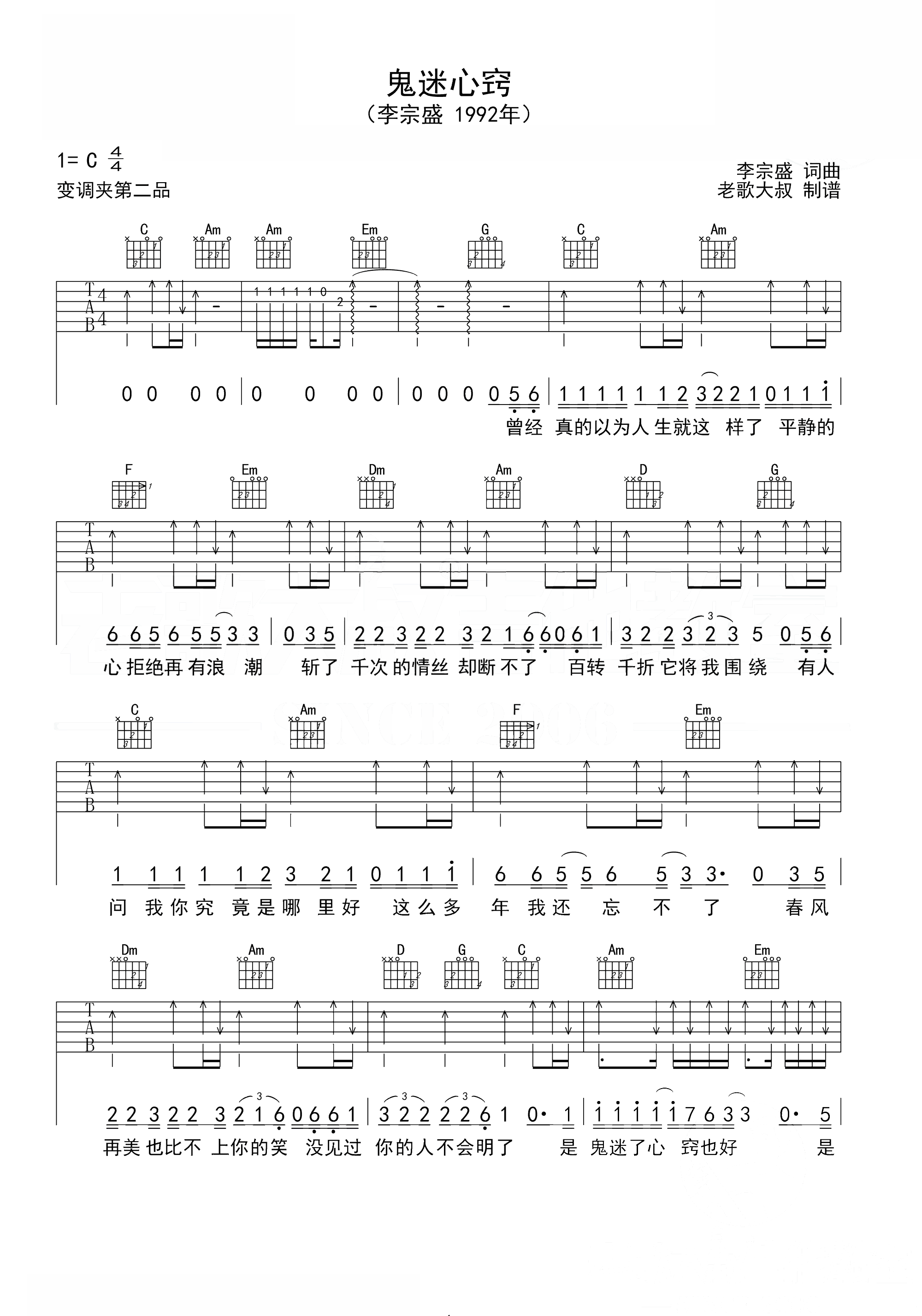 吉他李宗盛《鬼迷心窍》吉他谱_吉他弹唱谱_老歌大叔编配