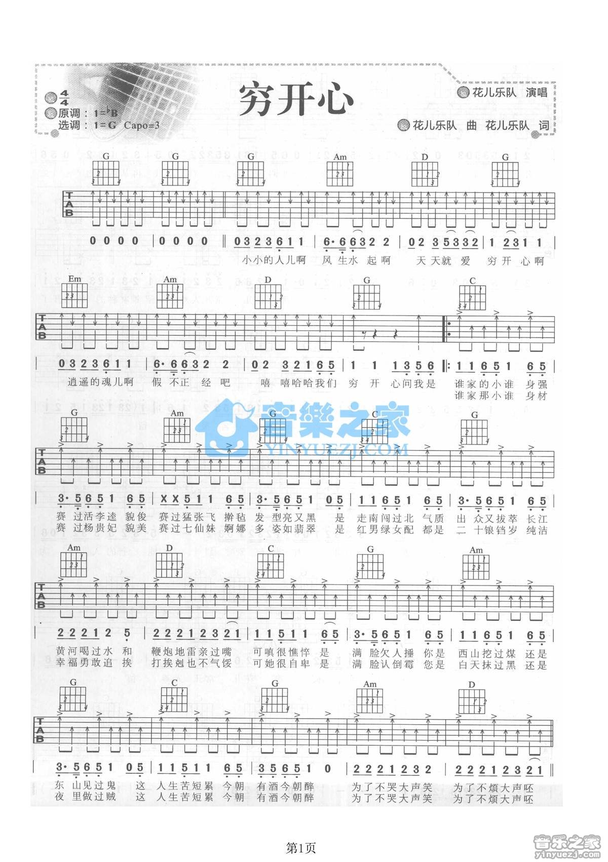 吉他花儿乐队《穷开心》吉他谱_吉他弹唱谱_YYZJ编配