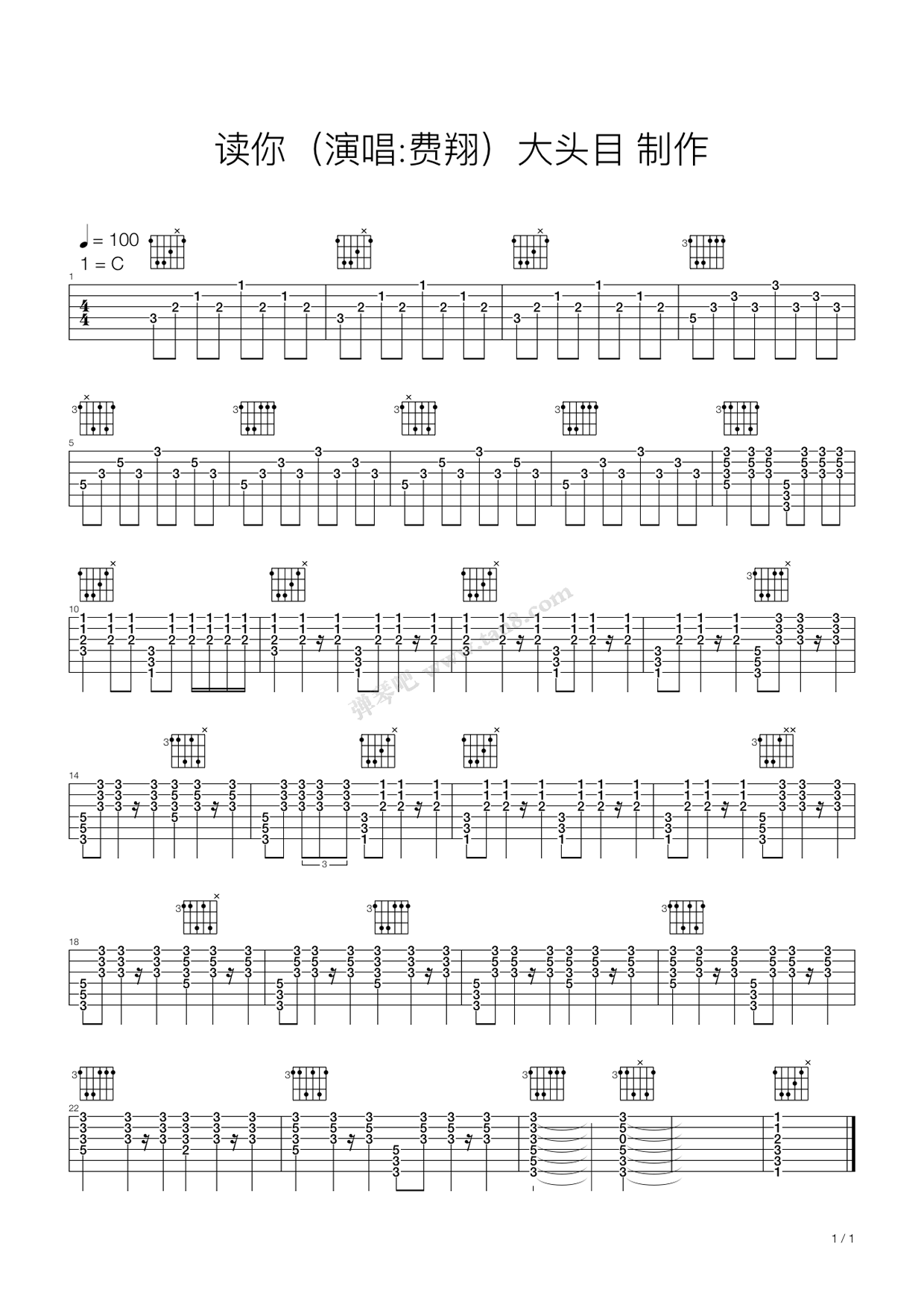 吉他蔡琴《读你》吉他谱_吉他弹唱谱
