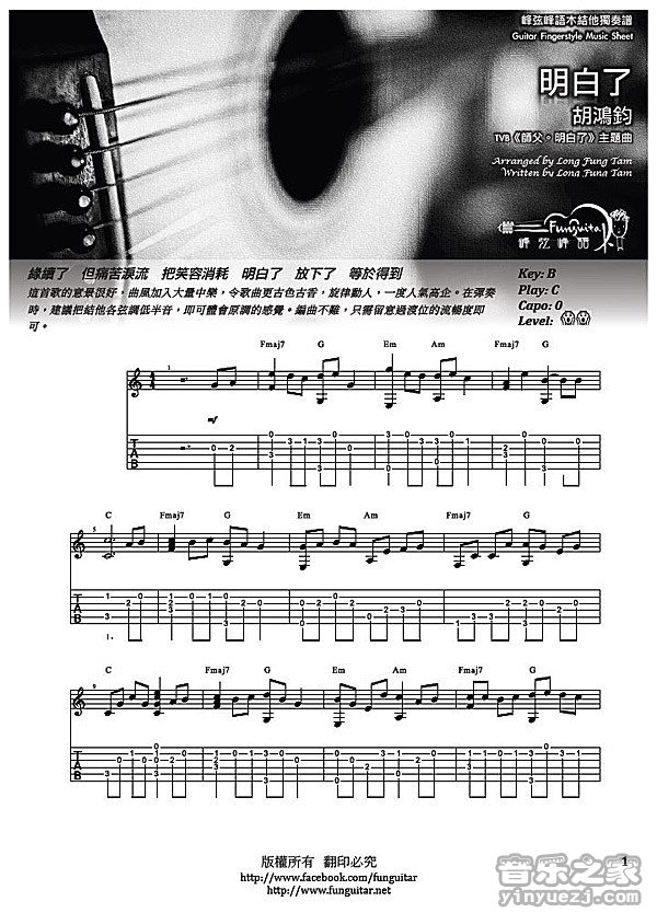 吉他胡鸿钧《明白了》吉他谱_吉他弹唱谱
