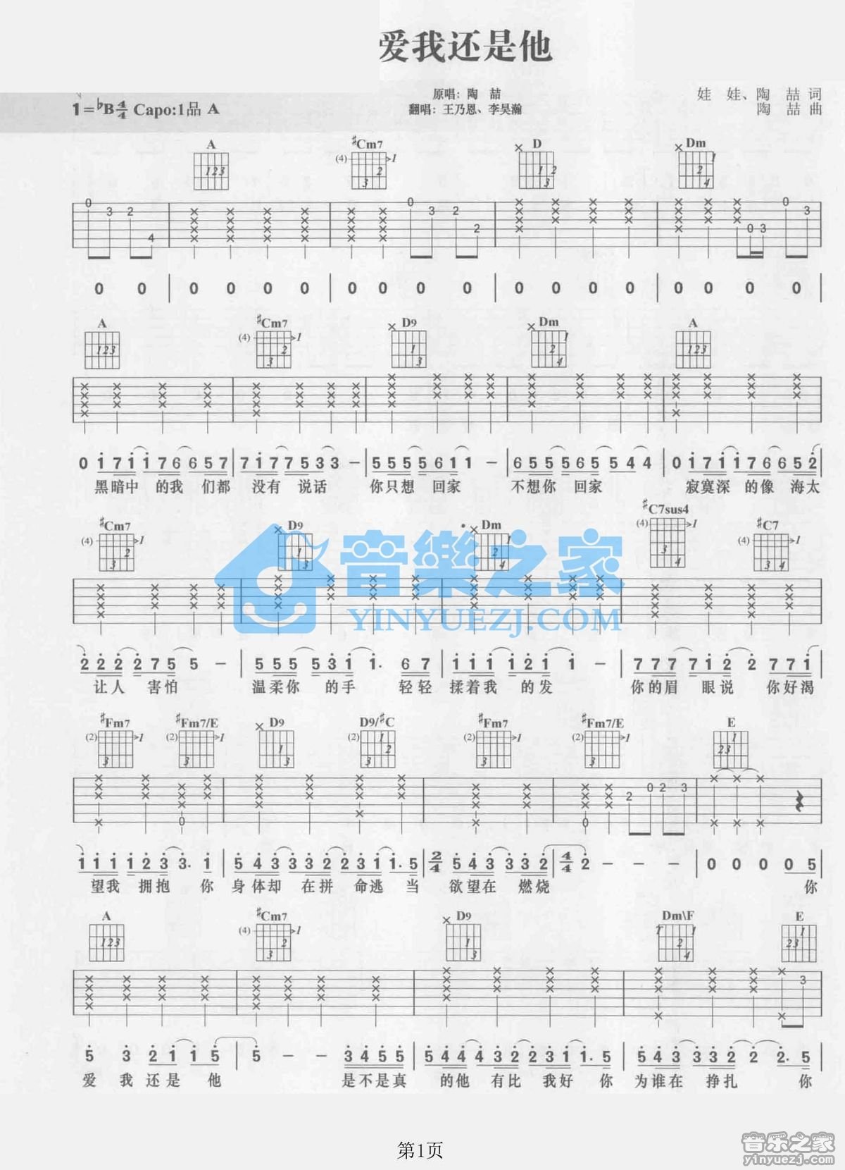 吉他 王乃恩/李昊瀚《爱我还是爱他》吉他谱_吉他弹唱谱