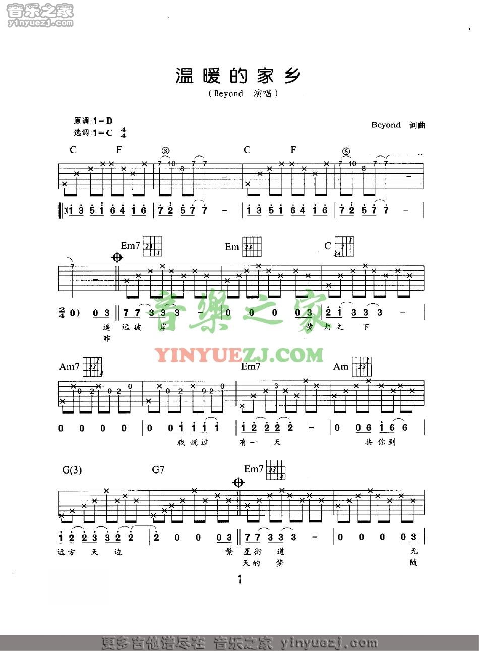 Beyond《温暖的家乡》吉他谱,YYZJ编配出品,共有3张高清图谱。...