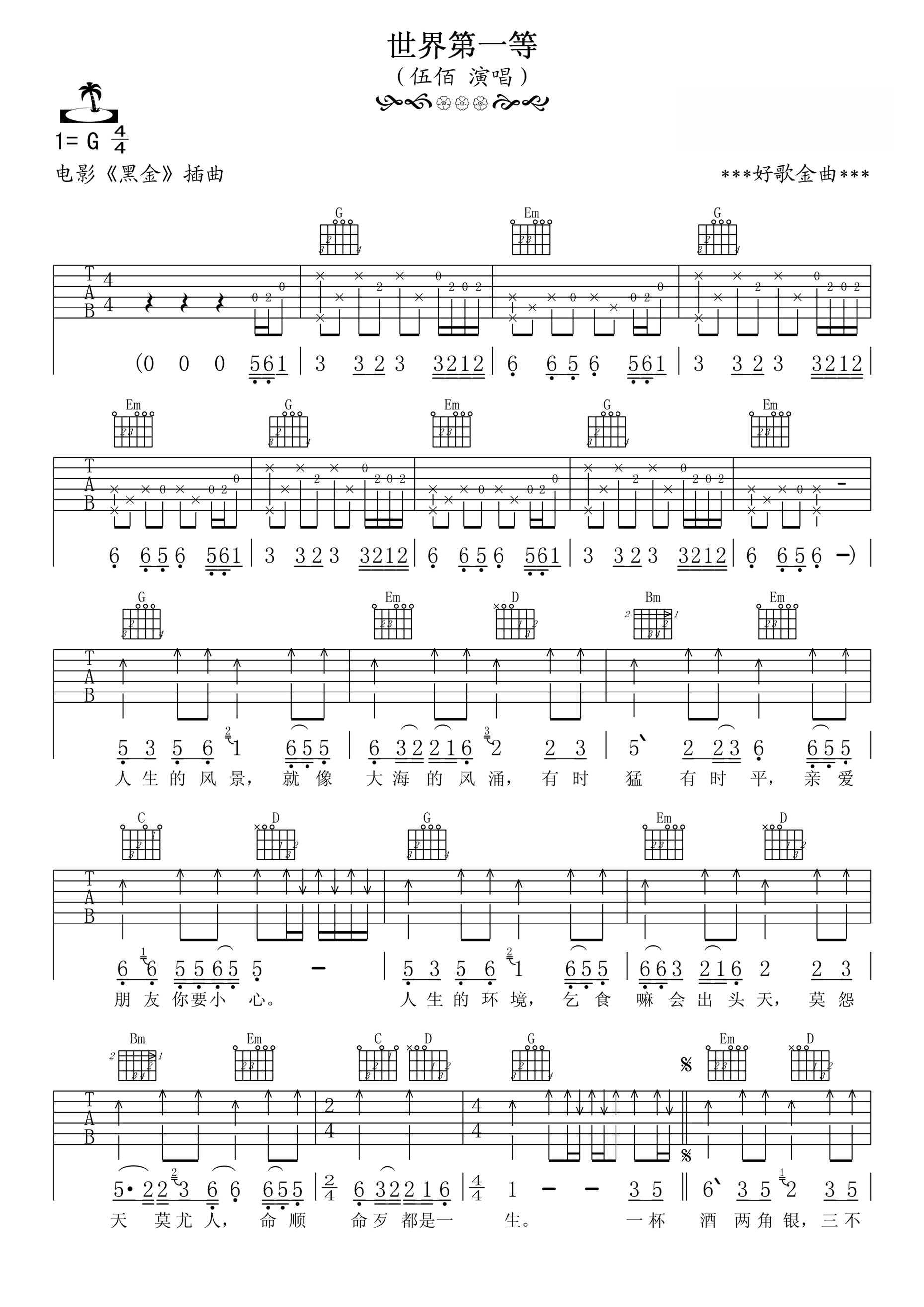 吉他伍佰《世界第一等》吉他谱_吉他弹唱谱_盘古开天地编配