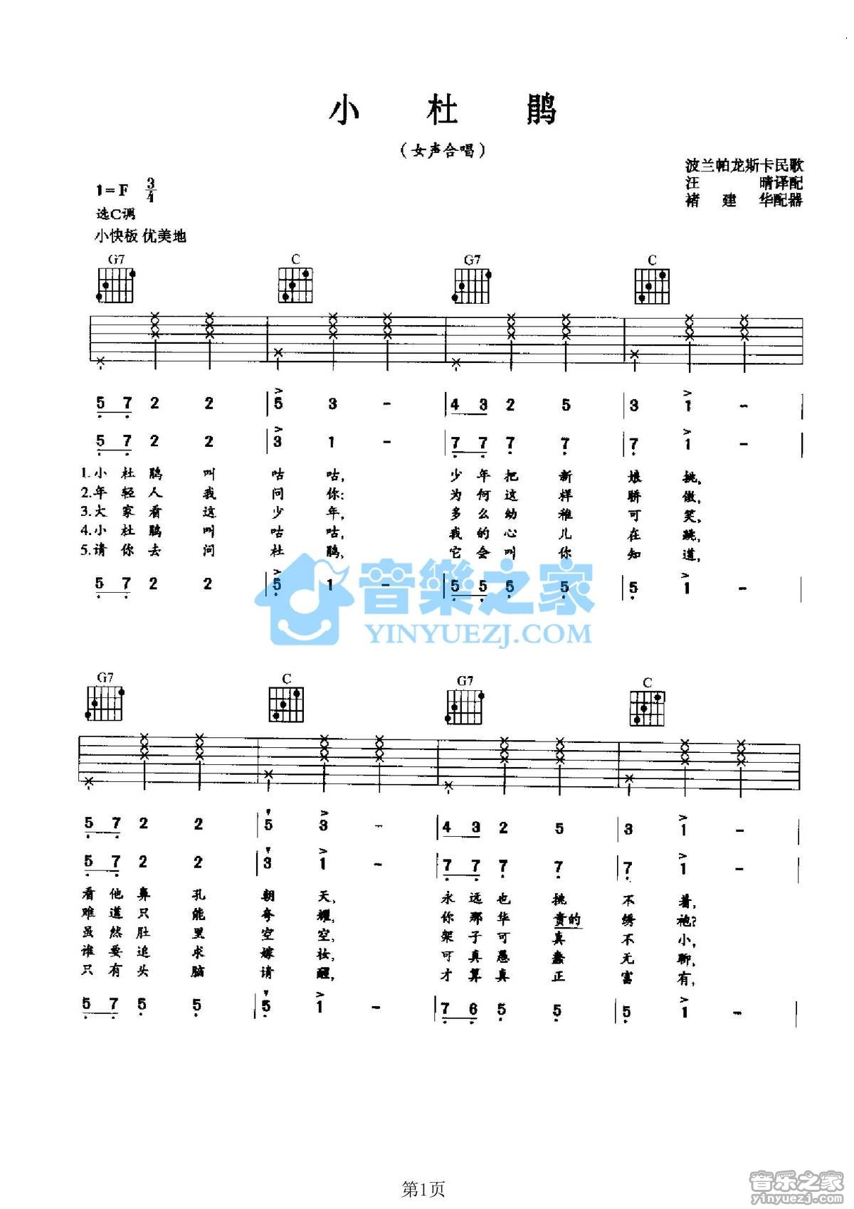吉他波兰民歌《小杜鹃》吉他谱_吉他弹唱谱