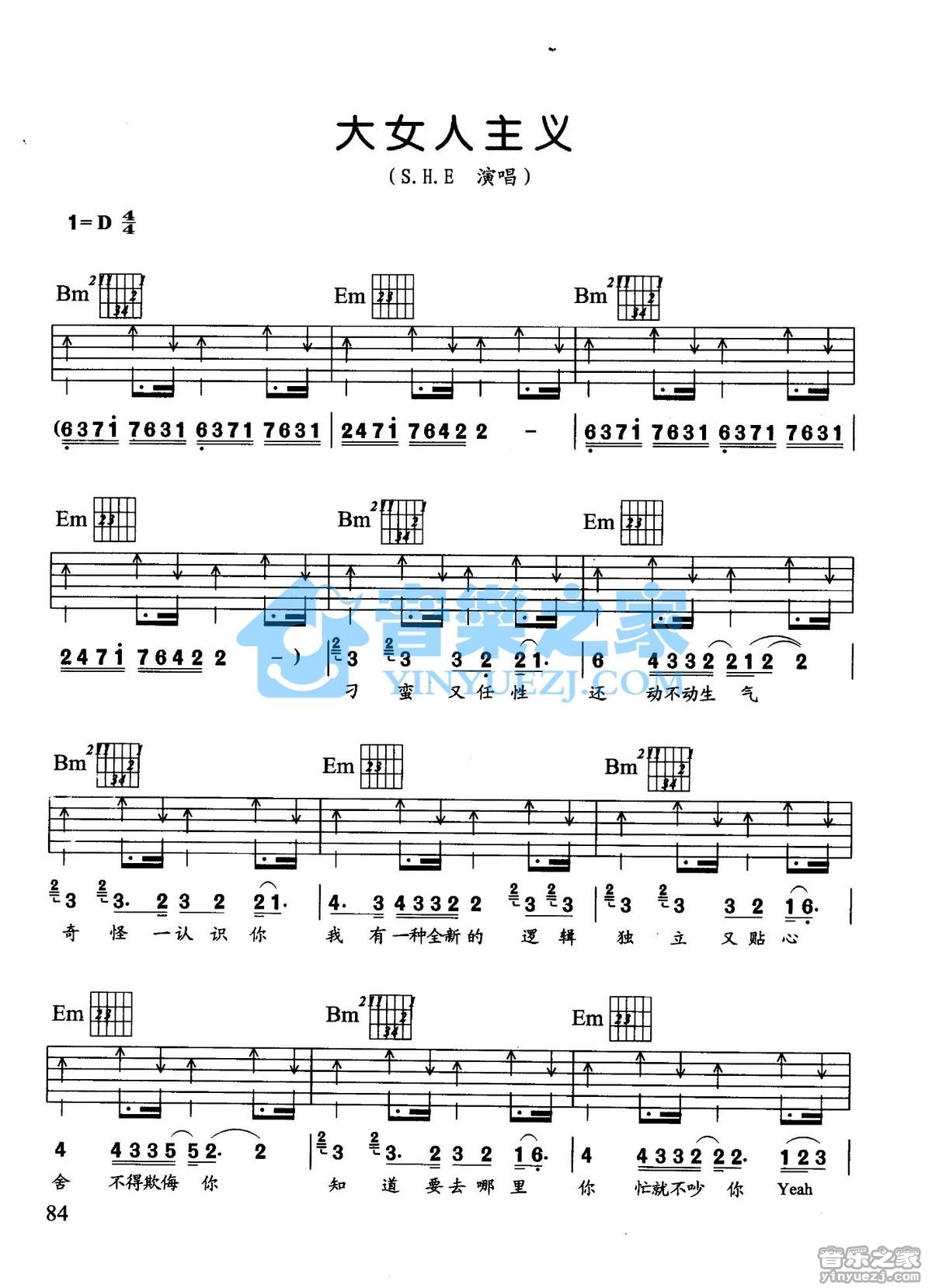吉他S.H.E《大女人主义》吉他谱_吉他弹唱谱_YYZJ编配