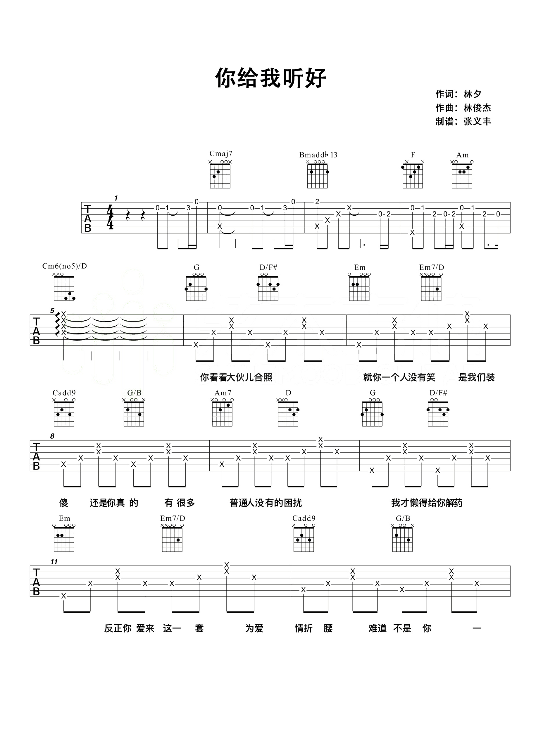 吉他陈奕迅《你给我听好》吉他谱_吉他弹唱谱_弦木吉他--张义丰编配