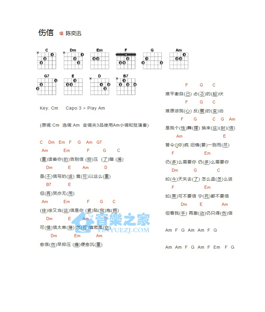 吉他陈奕迅《伤信》吉他谱_吉他弹唱谱