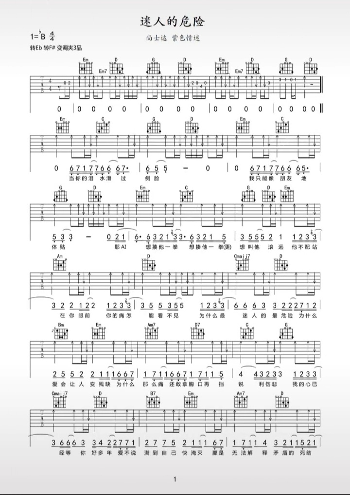 尚士达/紫色情迷《迷人的危险》吉他谱_G调吉他弹唱谱...