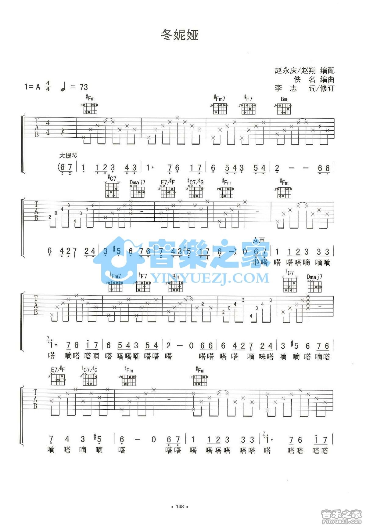 A调版李志《冬妮娅》吉他弹唱六线谱...