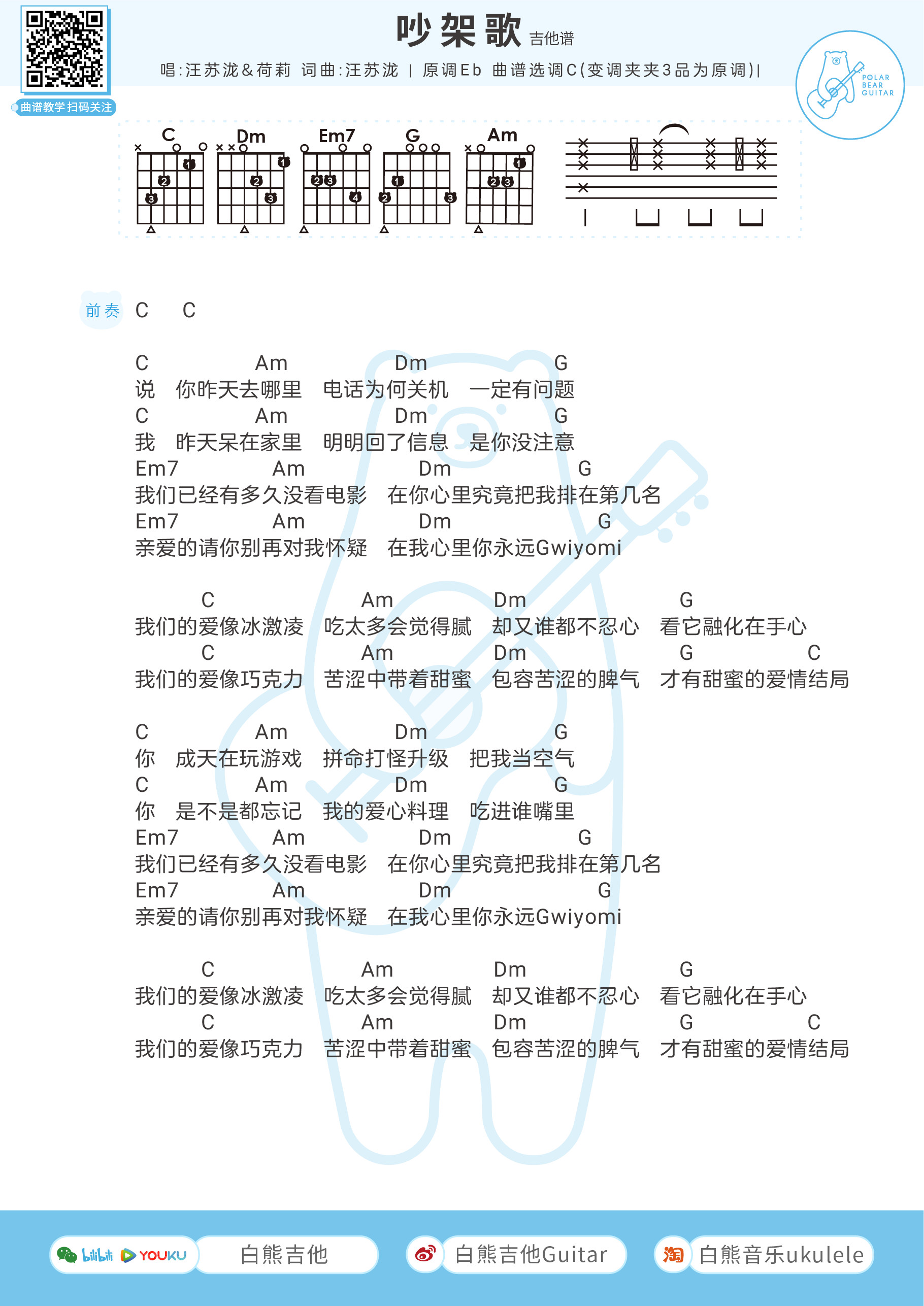 吉他汪苏泷/Hari《吵架歌》吉他谱