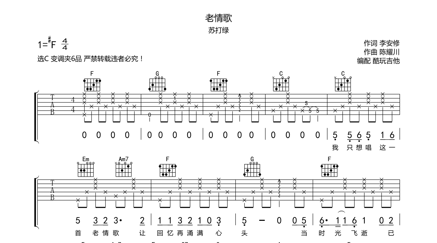 吉他老情歌吉他谱-苏打绿-琴友定制民谣版