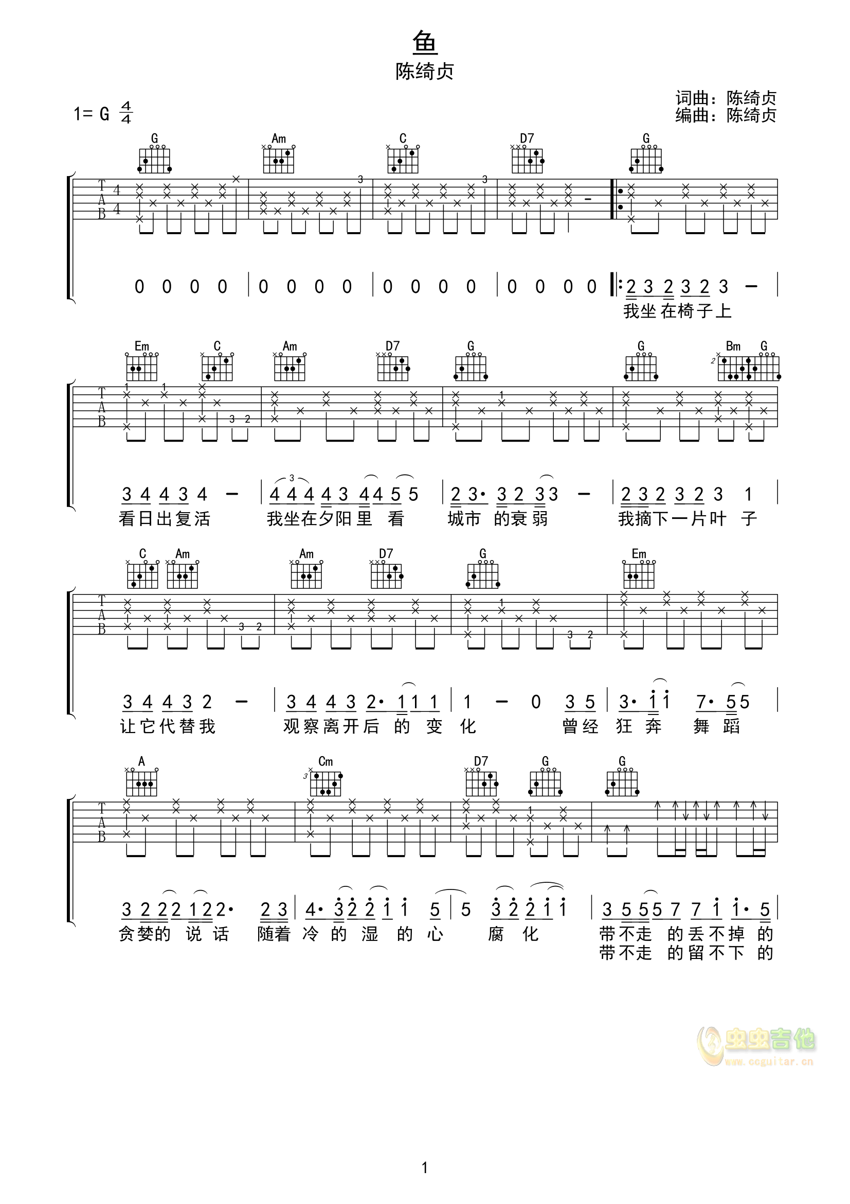 鱼吉他谱-陈绮贞本谱选调:G调Caps:不夹...
