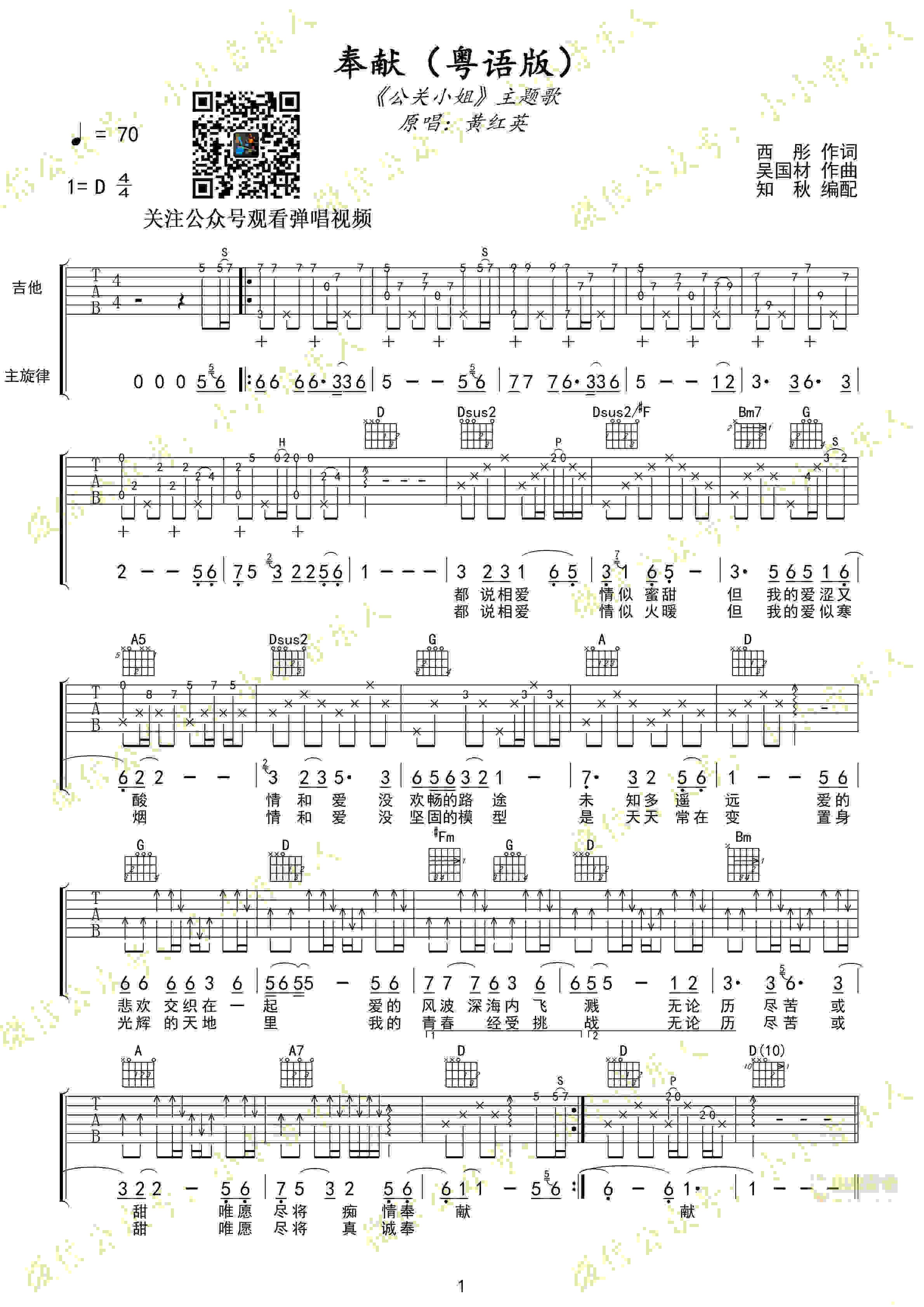 吉他《公关小姐》主题歌奉献吉他谱-粤语版