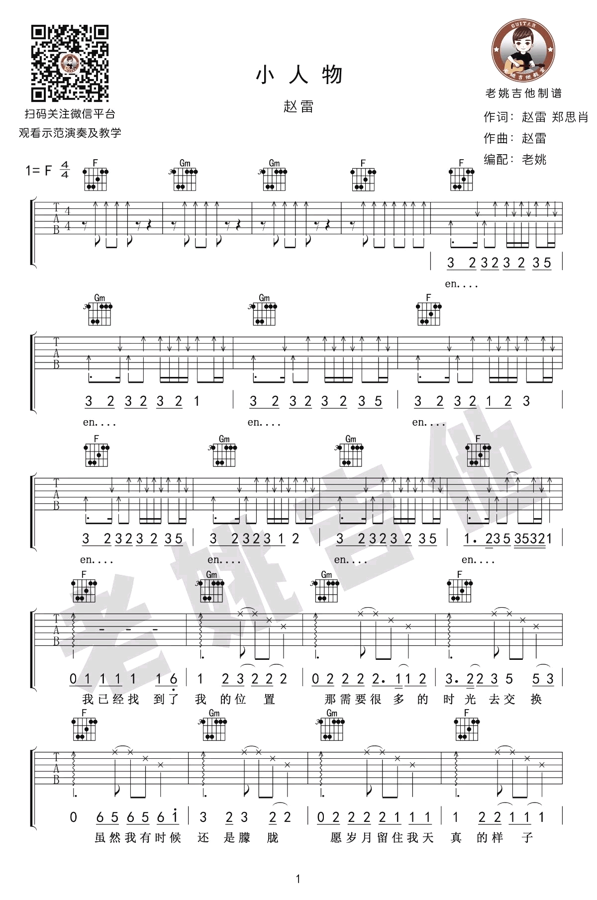 赵雷演唱的一首民谣歌曲,小人物六线谱,完整版共五张图片谱例,老姚吉他编配出品,易唱网整理分享...
