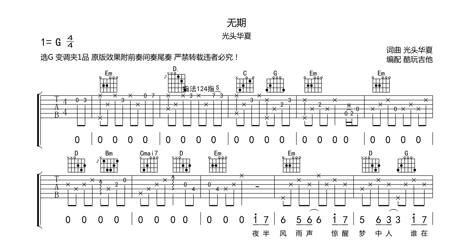 吉他无期吉他谱-光头华夏-原版编配附前奏间奏尾奏