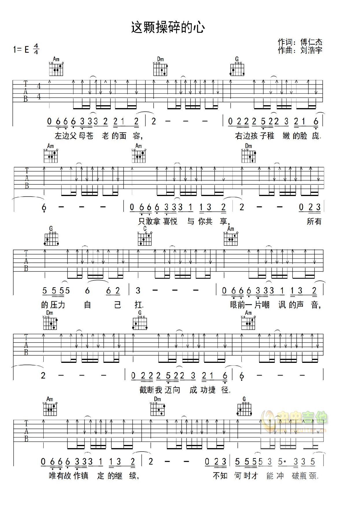 吉他 刘浩宇 这颗操碎的心 吉他谱