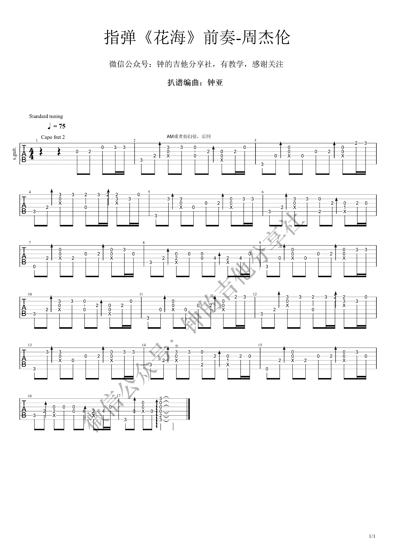 原调A调,变调夹加2品,G调指法编配的前奏。钟亚编配分享,易唱网整理分享。编配演奏说明:这次用了AM右手技巧,录出来的AM弹弦声音有点刺耳,也许我用的也不熟练,以后要多练练了,掌握力度,要做到收放自如。...