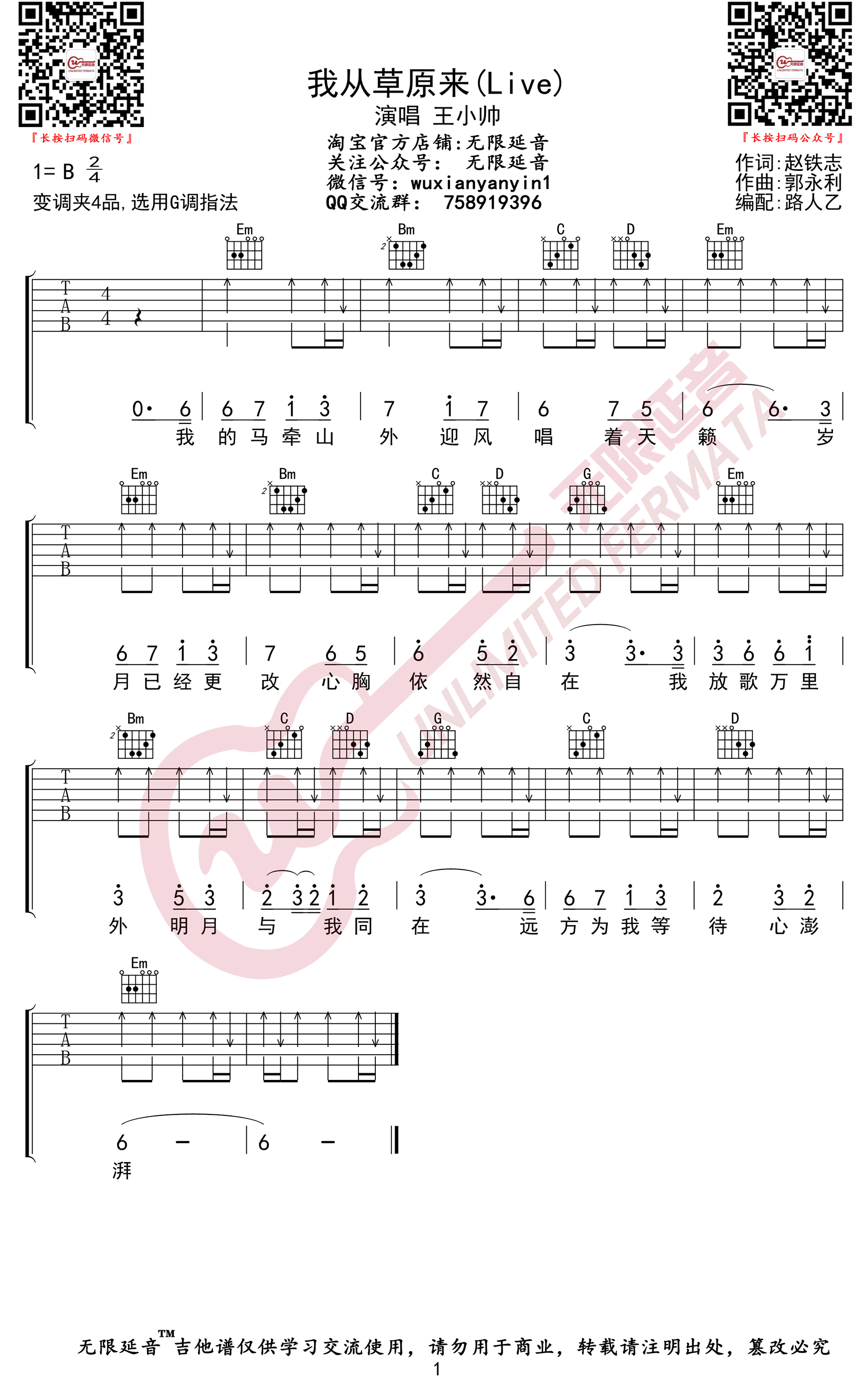 吉他我从草原来吉他谱_王小帅/凤凰传奇_抖音版