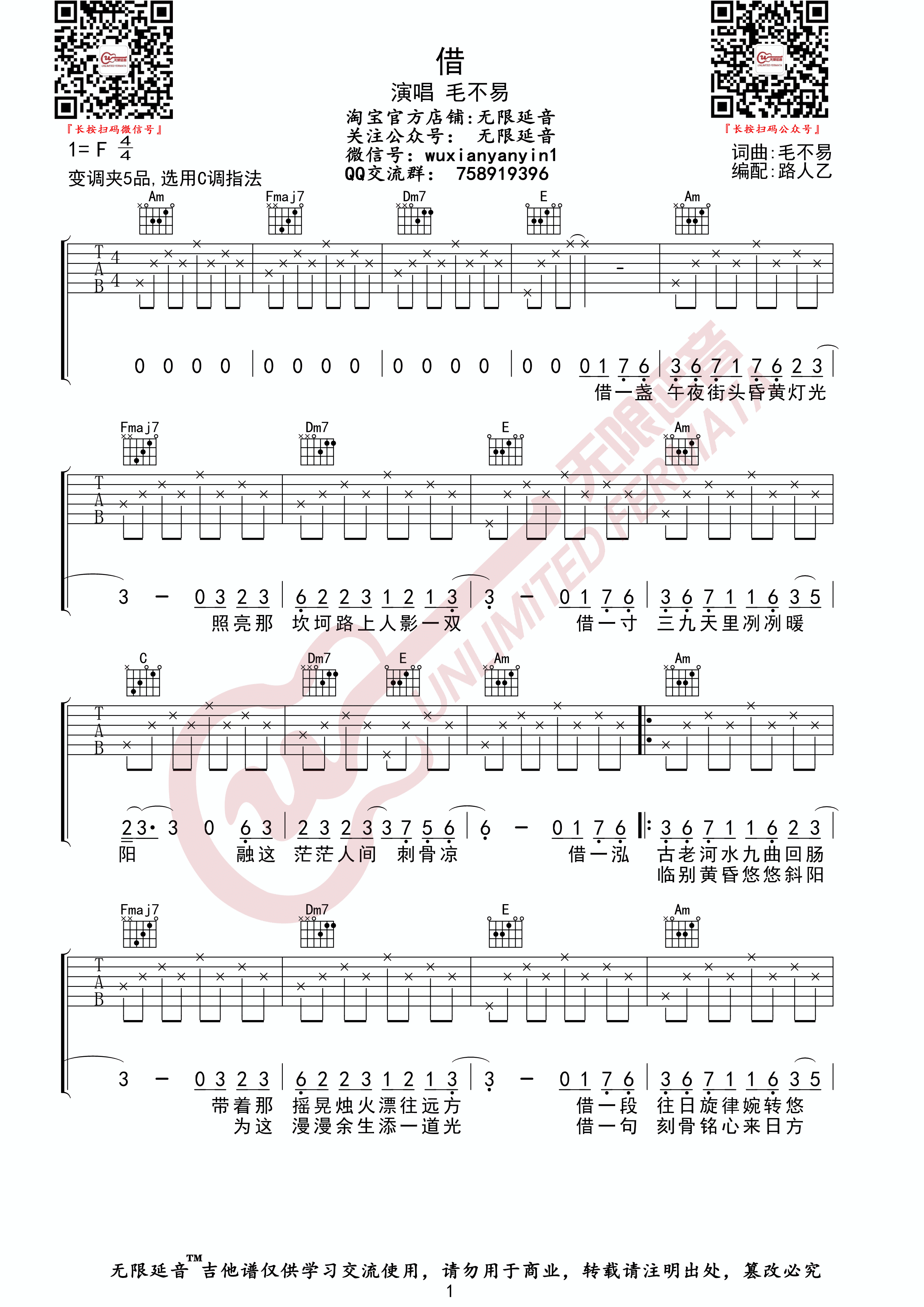 吉他毛不易 - 借(无限延音编配)吉他谱