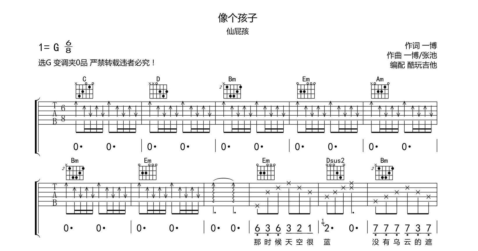 吉他像个孩子吉他谱-仙屁孩 抖音
